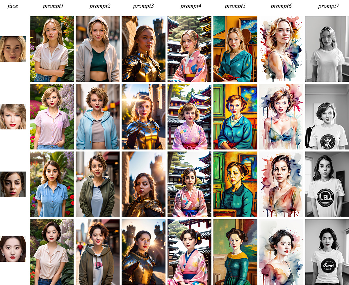 面部ID嵌入:支持导入面部ID嵌入,生成特定人物图像。