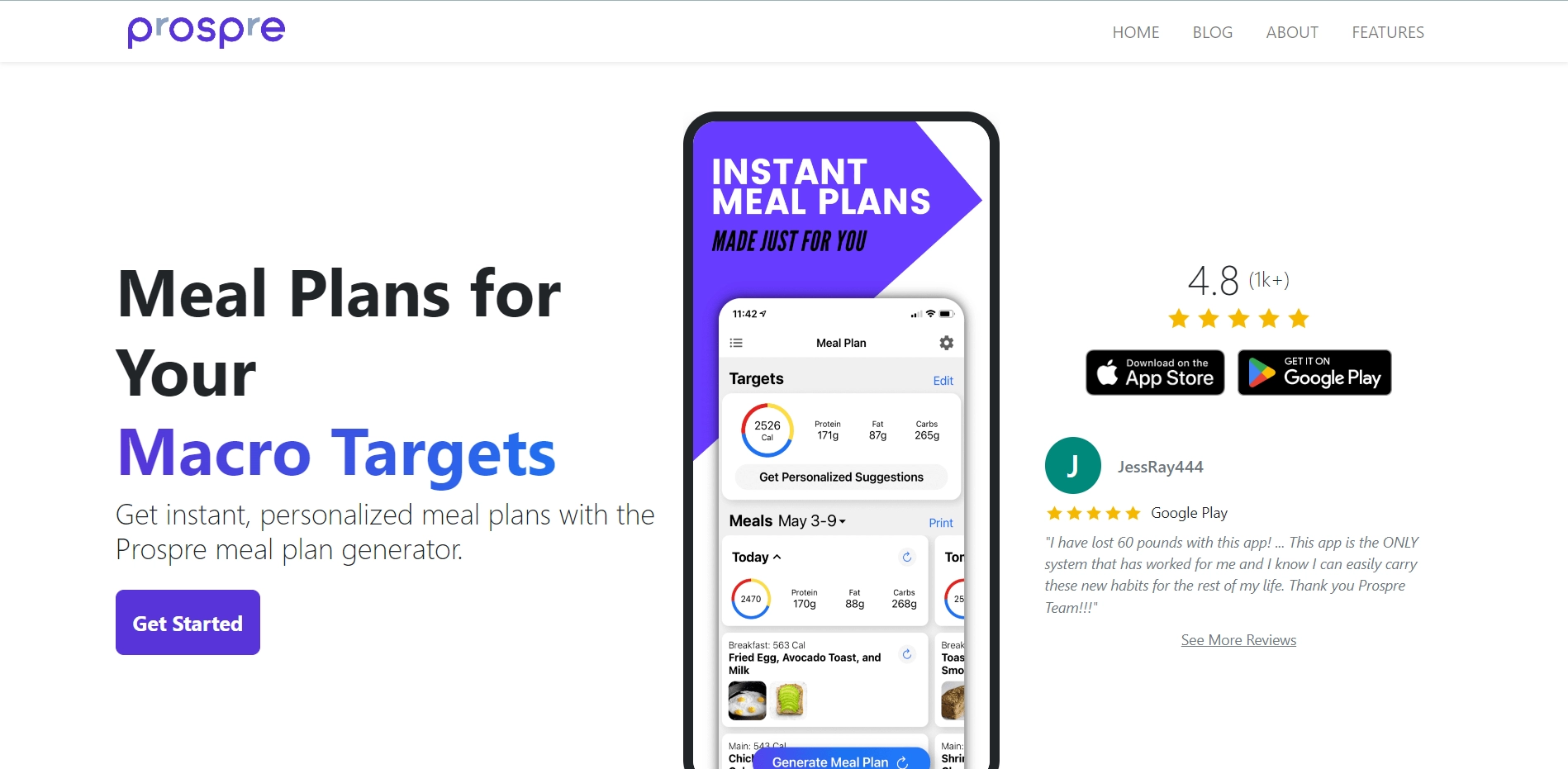 无论您是一个健美运动员希望增肌,还是一个新晋父母希望保持健康,都有适合您实现目标的宏量目标。Prospre不依赖时尚饮食,只是让良好的营养变得简单。因为Prospre可以制定任意热量和宏量组合的饮食计划,所以我们可以为任何目标制定完美的饮食计划。